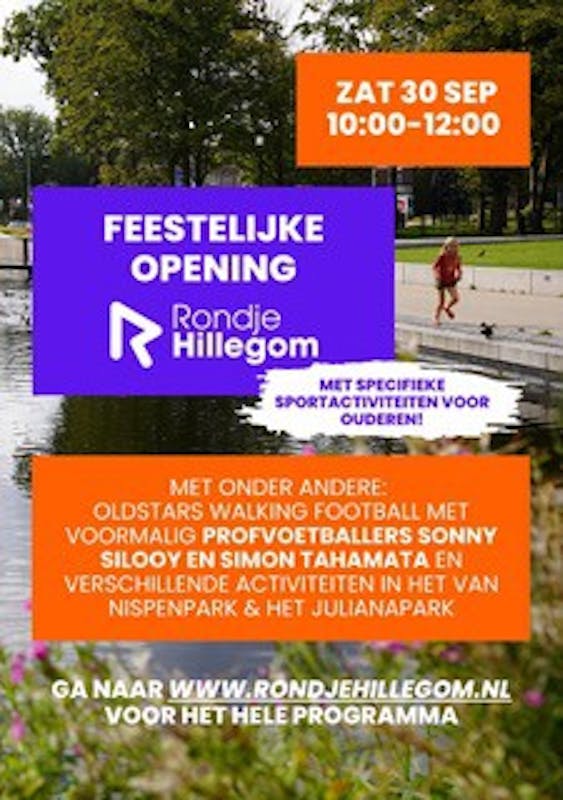 Op zaterdag 30 september is het zover: de feestelijke opening van Rondje Hillegom. Dit initiatief verbindt acht parken in Hillegom met elkaar door middel van vier wandelroutes. De opening wordt gevierd in aanwezigheid van Wethouder Jan van Rijn. Voormalig profvoetballers Sonny Silooy en Simon Tahamata zullen de ochtend aftrappen met een potje Oldstars Walking Football bij S.V. Hillegom.